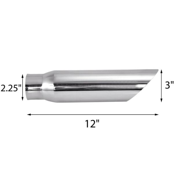 Stainless Steel Exhaust Tip 45 degree Angle Cut 2.25" Inlet 3" Outlet 12" Long